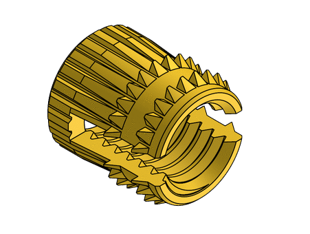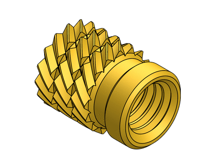 Los insertos de prensado se instalan por fuerza mecánica, con prensa o manualmente. Ofrecen una alternativa rápida sin necesidad de calor.IU1 – Inserto de latón por ultrasonidos sin cabeza