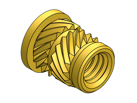El modelo IVK está equipado con una cabeza ensanchada que se apoya sobre la superficie de la pieza, proporcionando una mejor distribución de esfuerzos y un bloqueo antideslizamiento. Es ideal para plásticos blandos y materiales de baja densidad.IVH – Inserto roscado de latón sin cabeza